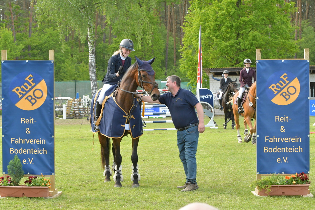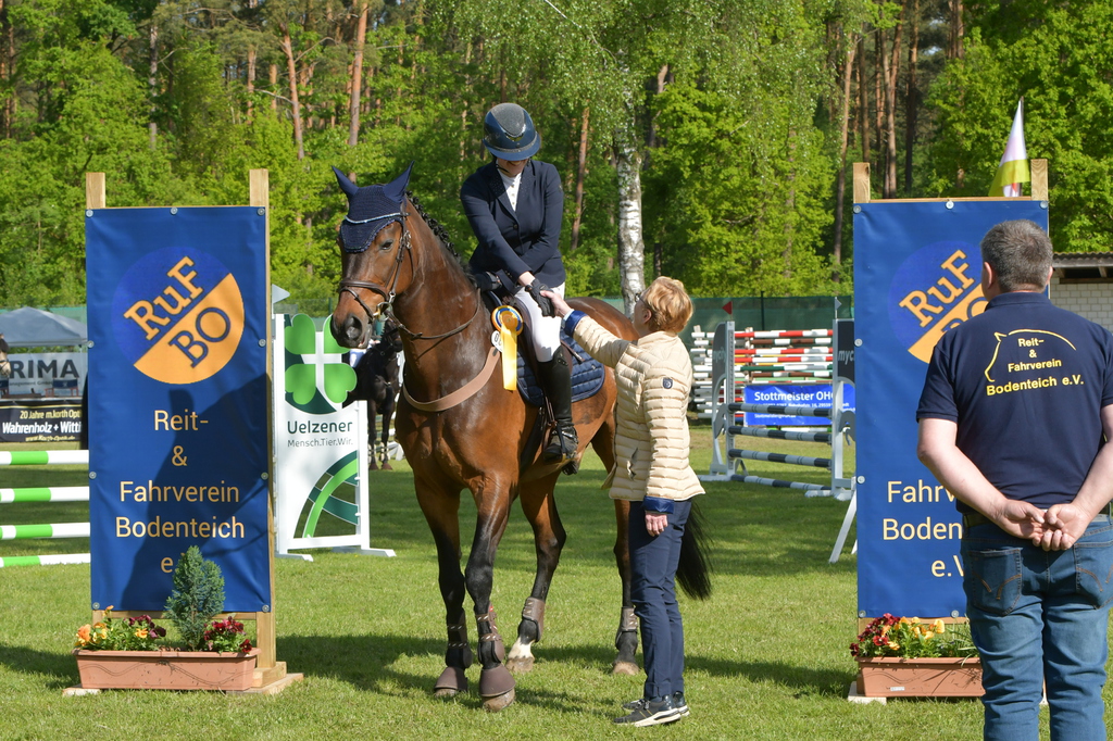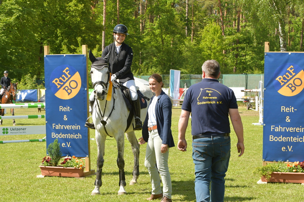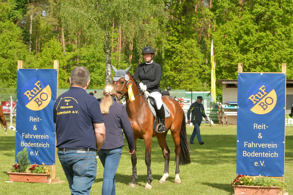 Das Starterfeld des gastgebenden Vereins war in diesem Jahr zwar nicht so groß, dafür aber erfolgreich: Allen voran Alina Cermann mit ihrer Stute Camille 11, die beiden belegten in der Stilspringprüfung Klasse E Platz 2 und gewannen danach die zweite Abteilung des Stilspringprüfung Klasse A*. In der ersten Abteilung dieser Prüfung sicherte sich Freya Klopp mit Alegro 102 den zweiten Platz. Platziert waren auch Maren Lippel mit Corabella 2 in der Springprüfung Klasse M* mit Stechen sowie Alexander Clar in der Springpferdeprüfung Klasse A*. Auch in der Dressur gab es Schleifen für die Bodenteicher Reiter. So siegte Christiane Voß-Führer mit Benetton 40 in der Dressurpferdeprüfung Klasse A, Freda Zinke belegte mit Bicaro in der Dressurreiterprüfung den zweiten Platz, Jella Niebuhr mit Maja und Ida Gade mit Sean 10 erhielten Schleifen in der Dressurprüfung Klasse E und Andrea Zinke schlug mit Hiralgo doppelt zu: Sowohl in der Dressurprüfung Klasse A* als auch in der Dressurprüfung Klasse L*-Trense holte sie sich Schleifen. Sarah Damm erreichte mit Imara 3 in der Dressurprüfung Klasse L*-Trense den zweiten Platz. Bei den jüngeren Reitern war Carla Rose mit Gangster 88 erfolgreich, sie kam im Dressurreiter-Wettbewerb Hufschlagfiguren auf den dritten Platz.